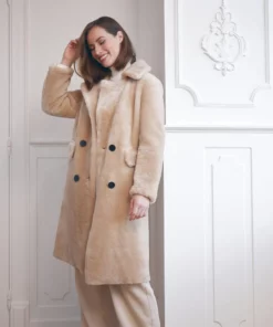 Ivy ist ein weiches Vergnügen. Es ist eine lange Pelzjacke aus doppelseitigem Schafsfell. Doppelseitiges Schaffell ist erstaunlich weich und von sehr hoher Qualität. Man spürt, dass er sowohl innen als auch außen aus Schafsfell besteht, das Sie mit Sicherheit warm und bequem zugleich hält.