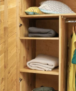 Standardmäßig ist ein Regalfach und eine Kleiderstange enthalten. Darüber hinaus kannst du den Schrank nach deinen Bedürfnissen ausstatten. Alle Regalfächer lassen sich auf beliebiger Höhe innerhalb eines Lochrasters einsetzen.