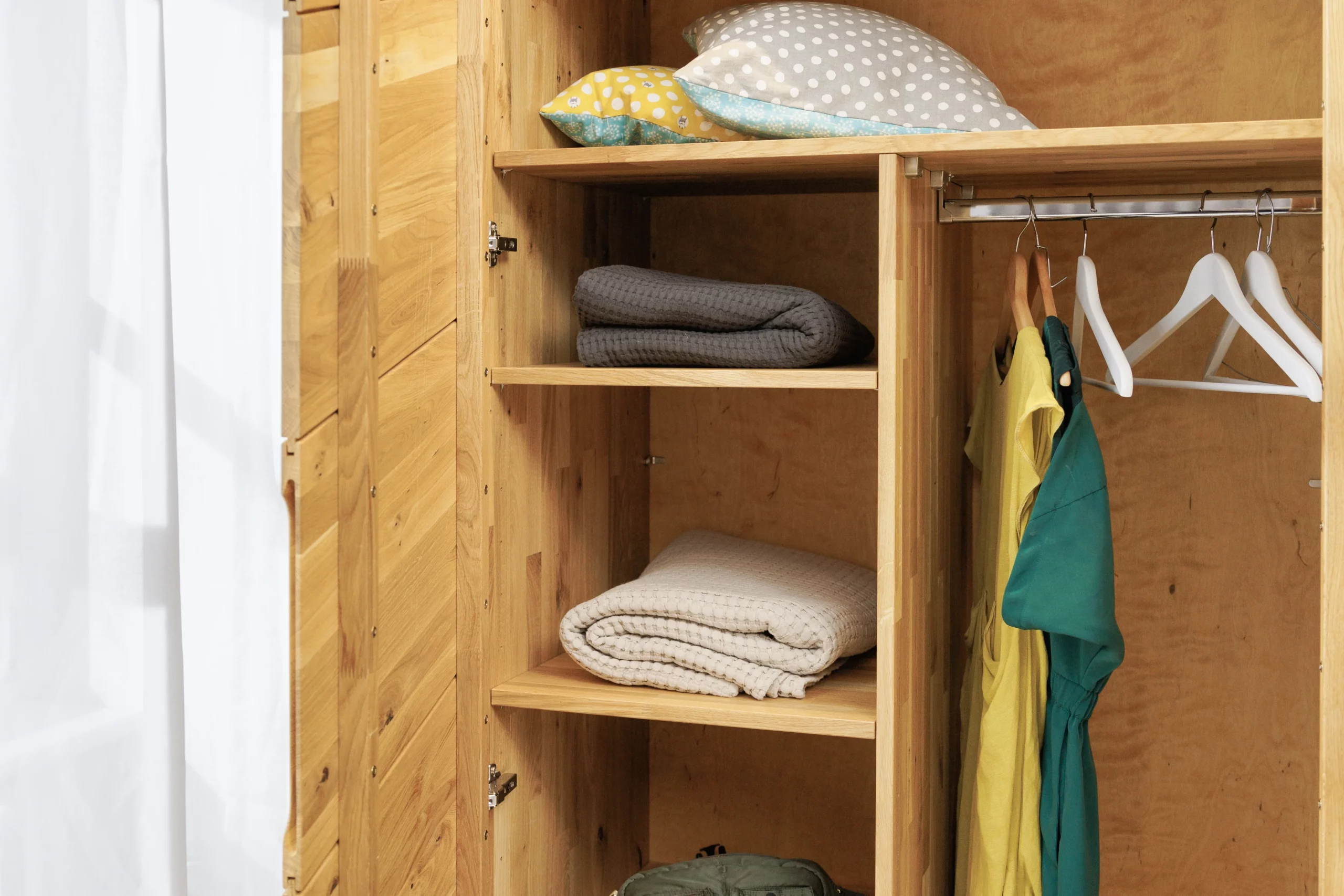 Der Kleiderschrank Prenzlauer Berg aus handverlesener Wildeiche ist ein Traum für jedes Schlafzimmer. Der Schrank wird komplett aus zertifiziertem Massivholz gefertigt und nur mit hochwertigen Verbindungselementen ausgestattet. Die Wildeiche wird ökologisch geölt und ist damit widerstandsfähig gegen Wasser und Schmutz. Zugleich kann das Holz weiter atmen und verbessert so das Raumklima.