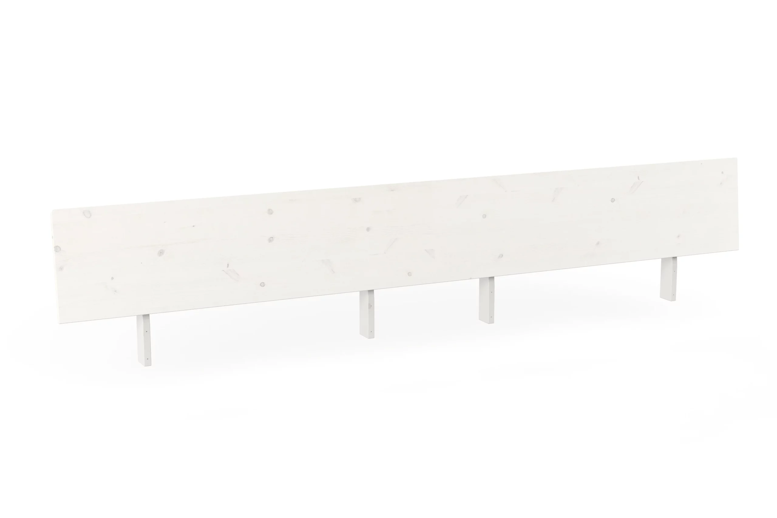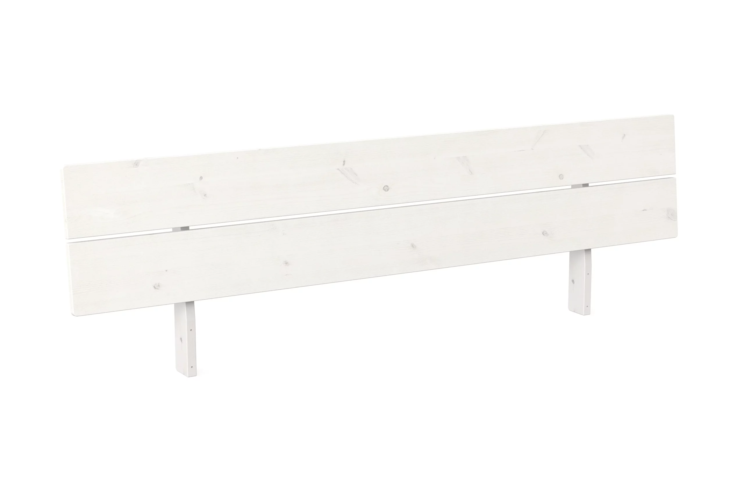 Kopfteil für das Schwebebett Swebe aus massivem Kiefernholz mit weißer Biolasur. Die Lehne ist leicht angeschrägt für eine gemütliche Sitzposition.