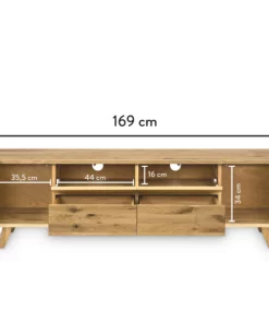 Das Lowboard Kreuzberg L ist aus elder Wildeiche gefertigt. Mit seinen abgerundeten Ecken und dem schnörkellos geradlinigen Design, wertet es jeden Raum auf. Die schrägen Füße erinnern an das Design der 50er / 60er Jahre.