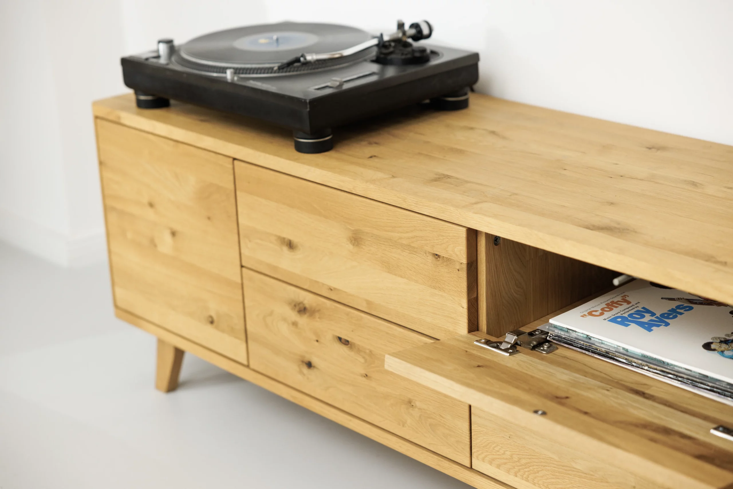 Eiche ist ein sehr hartes, haltbares Holz und es wurden nur die besten Verbindungen und Schubführungen der Firma Blum verwendet. Mit Kreuzberg schaffst du dir ein zeitloses Design Stück an, dass Generationen überdauern kann.