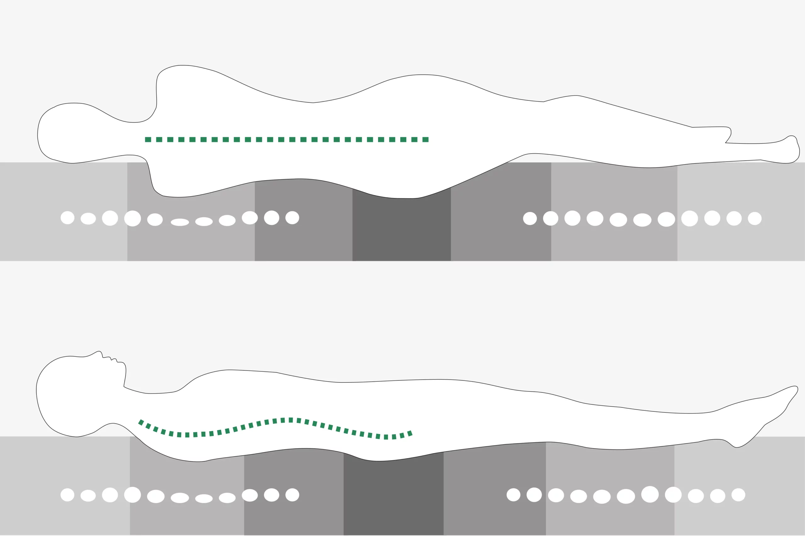 Naturlatexmatratzen bietet im Vergleich zu anderen Matratzen die beste Punktelastizität, d.h. dass die Matratze nur dort nachgibt, wo sie belastet wird. So wird gewährleistet, dass deine Wirbelsäule immer in ihrer natürlichen Stellung liegt.
