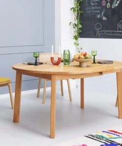 Du kannst die Tischplatte bei Bedarf leicht auseinander ziehen und mit der Komfort-Klappfunktion um eine 50cm breite Erweiterungsplatte verlängern.