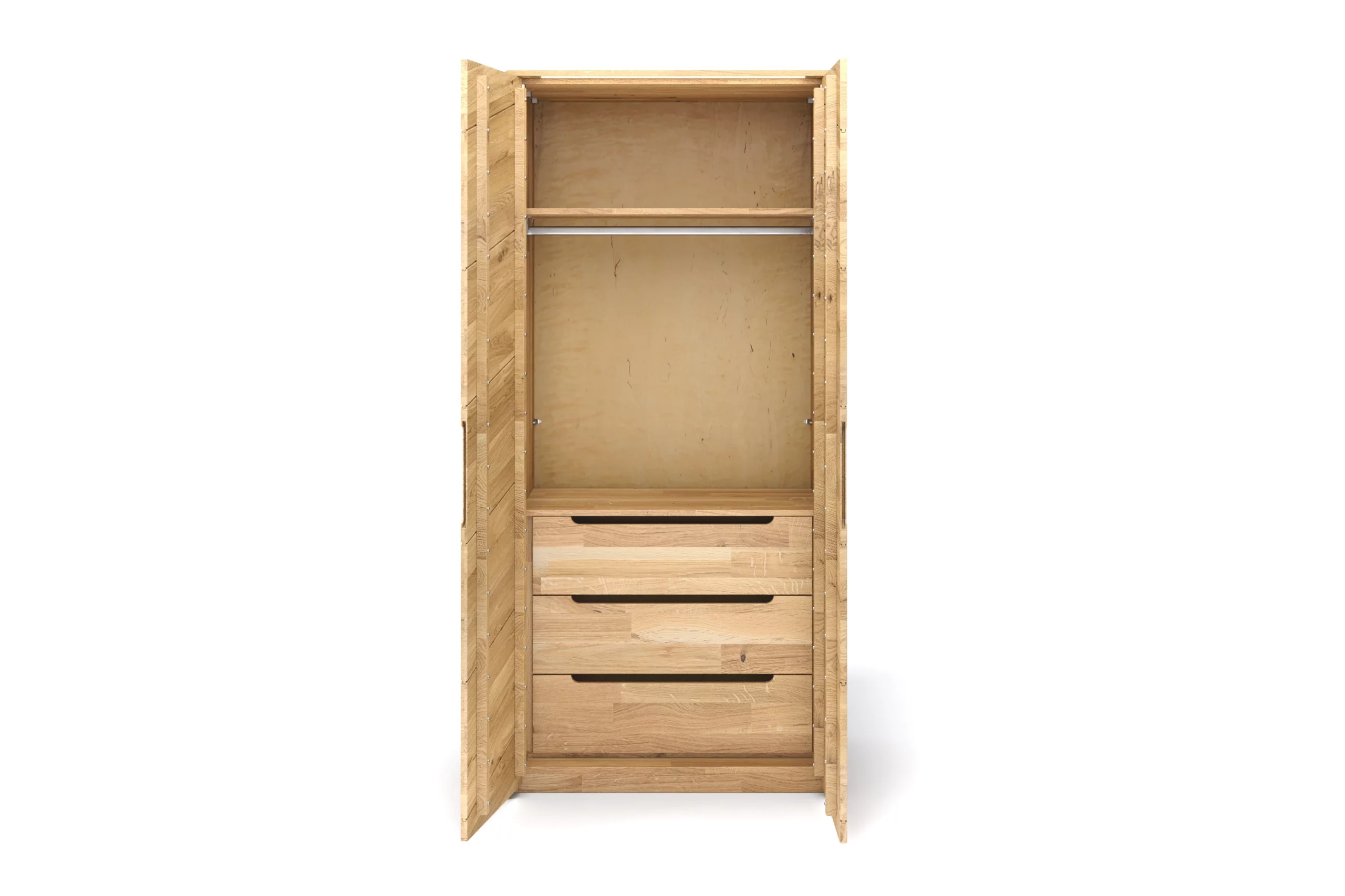 Modul mit drei Schubladen für den Kleiderschrank Prenzlauer Berg in den Breiten 50 und 100cm. Schubladen schließen mit Soft-Close Technik.