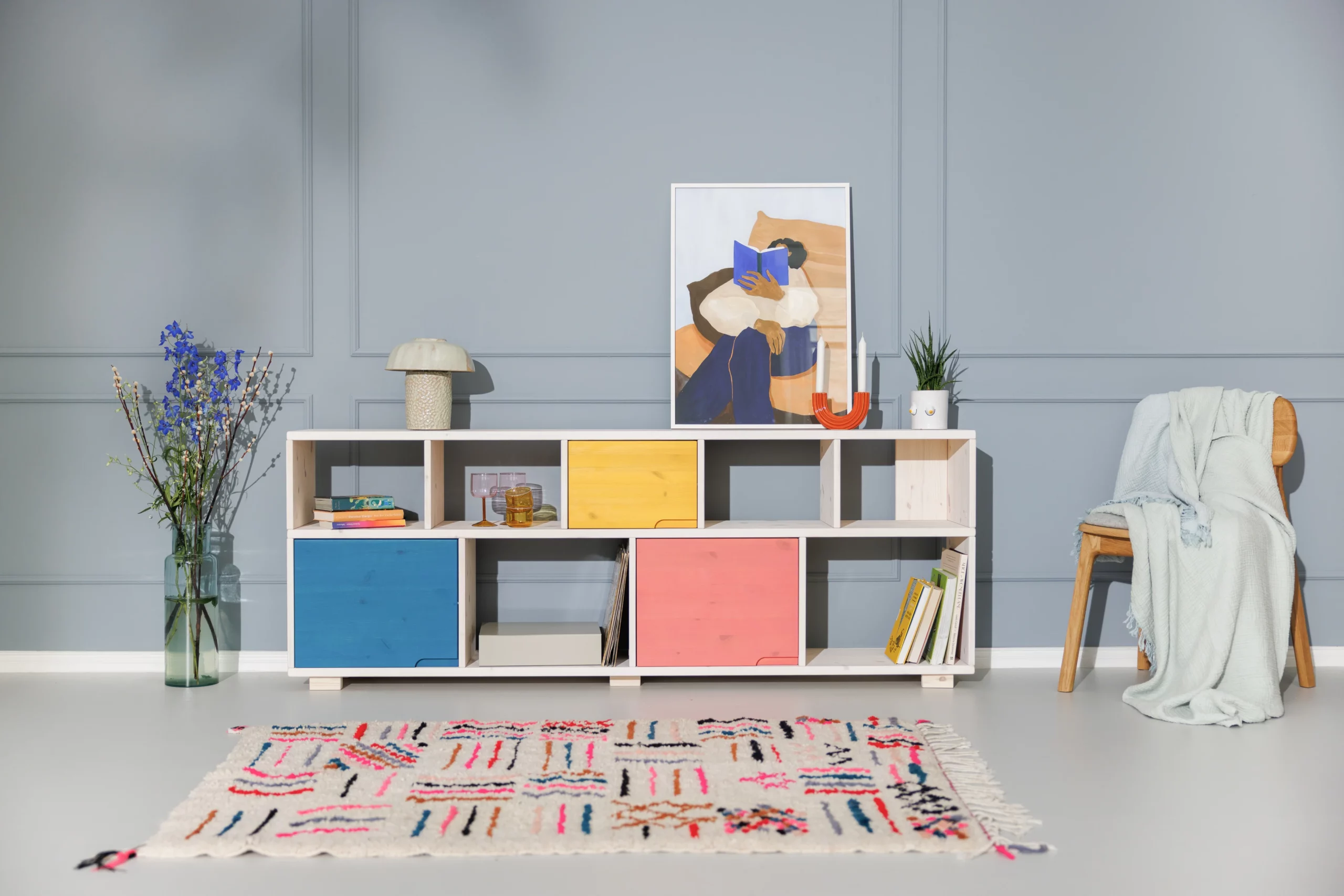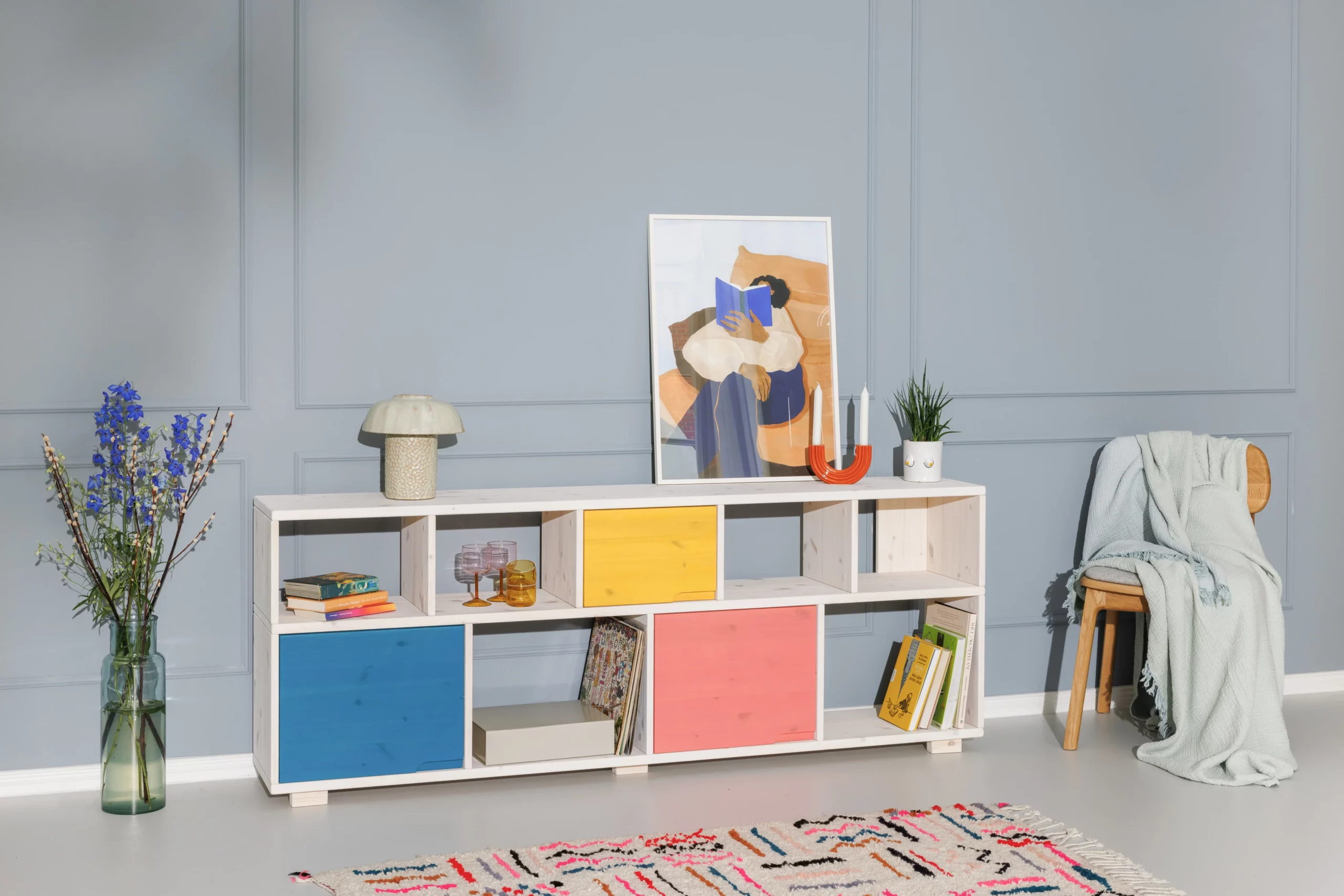 Optional kannst du weiße oder farbige Türen dazu bestellen. Die erdigen Farben bringen frische Akzente in jeden Raum. Die Türen werden mit Magneten in Position gehalten und schnappen mit einem sanften Ton zu.