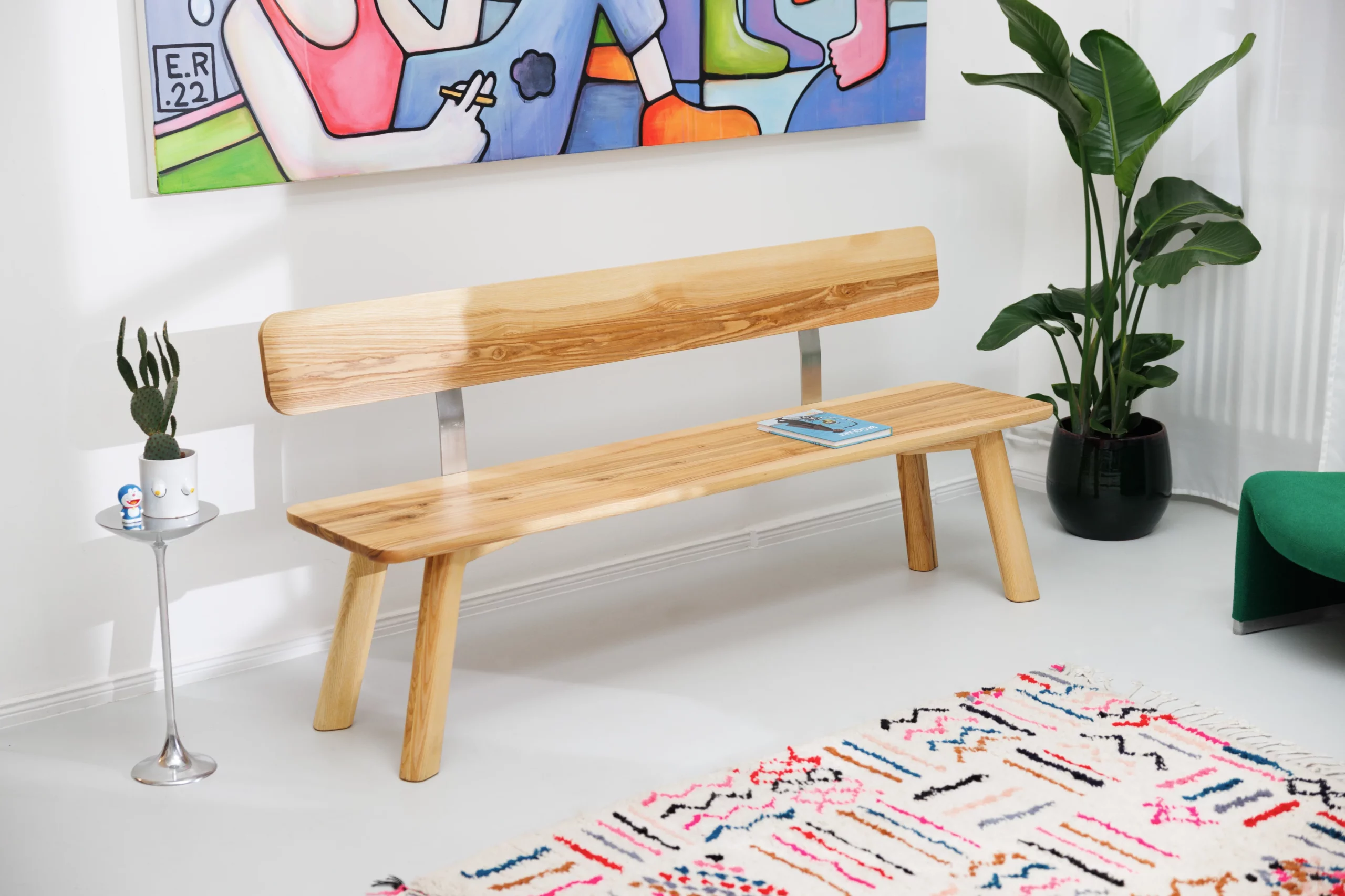 Die Sitzbank mit Lehne Form A passt zum Tisch Form A und macht das Esszimmer gemütlich.Die Lehne ist sehr komfortabel und an massiven Winkel aus Edelstahl stabil befestigt. Die Sitzbank ist ebenfalls aus massivem zertifiziertem Massivholz in einer Holzart deiner Wahl gefertigt.