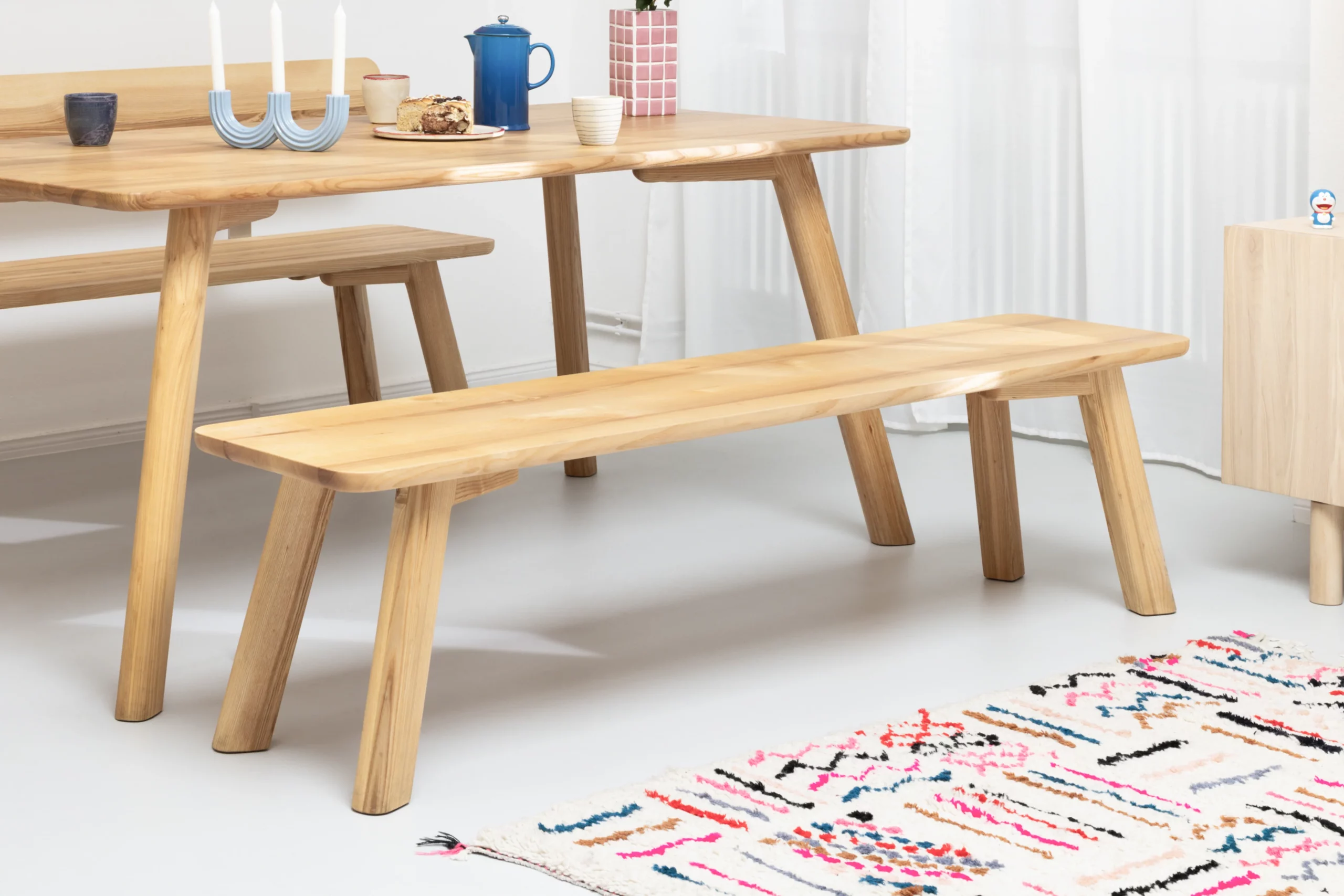 Wenn die Sitzbank 50cm kürzer als der Esstisch ist, kannst du sie unter dem Tisch verstecken.