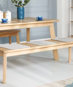 Die Sitzbank wird mit mit mehreren Längs- und Querzargen verstärkt. Wenn die Sitzbank 30cm kürzer als der Esstisch ist, kannst du sie unter dem Tisch verstecken.