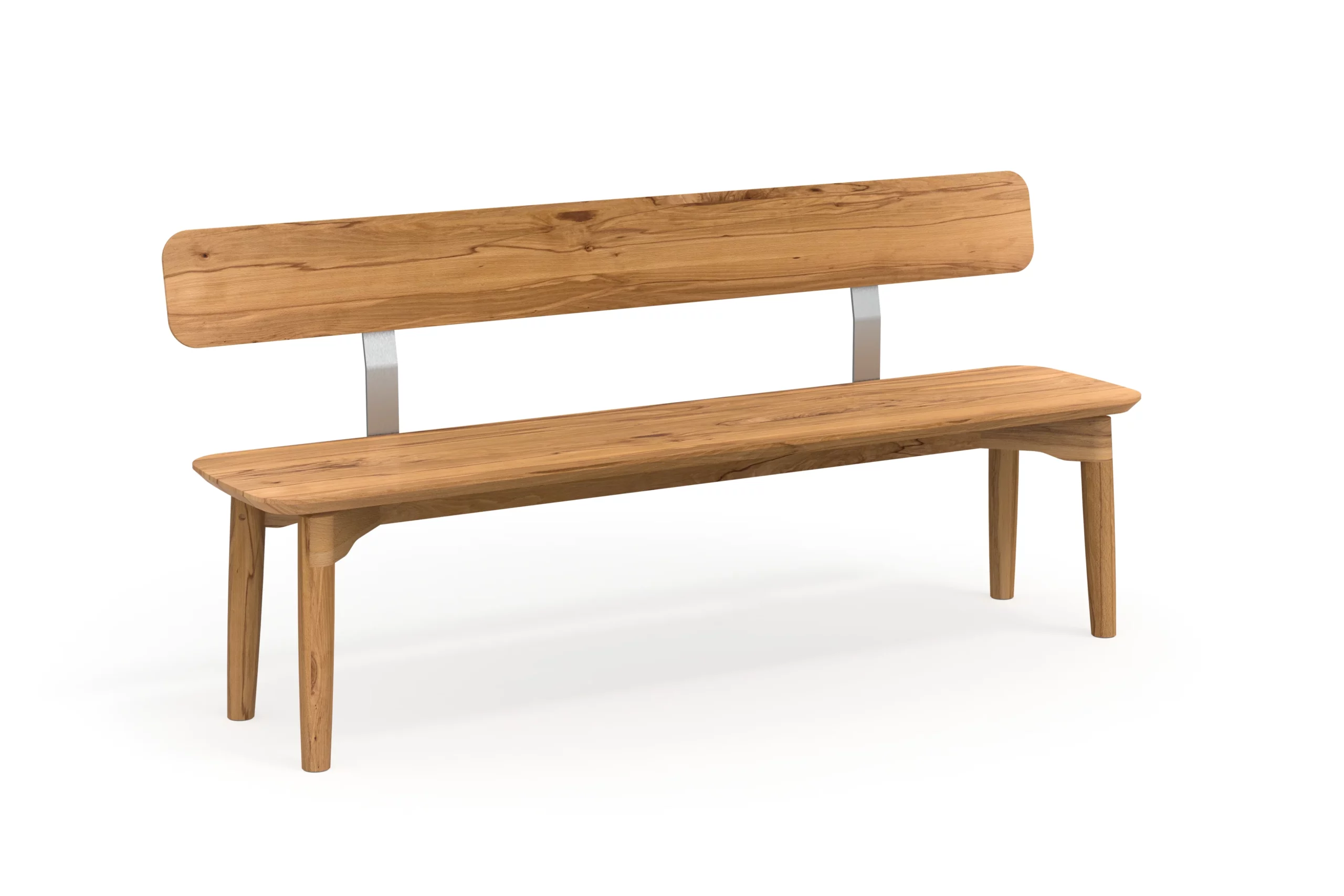 Die Sitzbank wird aus hochwertigem, zertifiziertem Massivholz in einer Holzart nach Wahl gefertigt. Die natürliche Maserung des Holzes wird durch die sorgfältige Stabverleimung mit langen, durchgehenden Lamellen besonders betont.