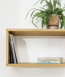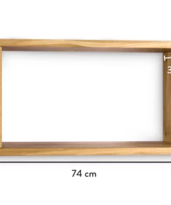 Das Wandregal Neukölln M ist 74cm breit. Es gibt noch zwei weitere Größen in 109cm und 39cm Breite. Du kannst in den Regalen große Bildbände, Ordner oder Schallplatten verstauen.